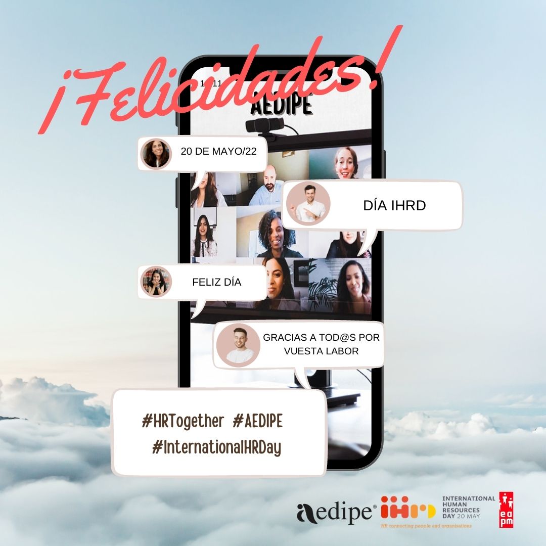 | Hoy celebramos el Día Internacional de los Recursos Humanos (#InternationalHRDay #HRTogether) y desde AEDIPE queremos hacerte llegar nuestra más sincera felicitación y reconocimiento por tu labor como profesional de la función de dirección de personas en las organizaciones, capital siempre, pero especialmente valiosa en estos tiempos de cambio.